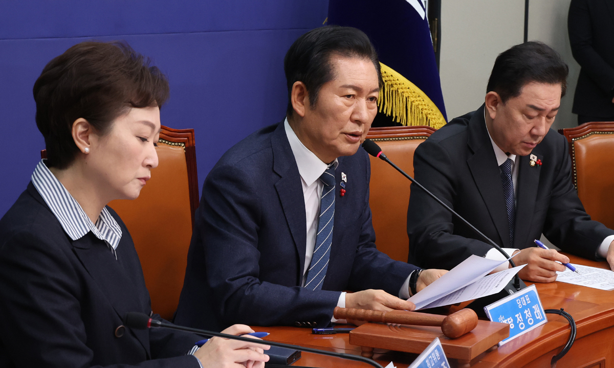 그러면서 야당의 ‘통일교 특검’ 요구는 일축했다. 정 대표는 비공개 최고위원회의에서 “국민의힘의 통일교 특검 주장은 절대 수용 불가하다. 일고의 가치도 없다”고 잘라 말했다. 그는 “시대적 책무인 3대 특검을 벗어날 생각은 꿈도 꾸지 말라”며 “3대 특검에 미진한 부분을 마무리하자는 것이지, 새 특검을 하자는 것이 아니다”라고 못 박았다.